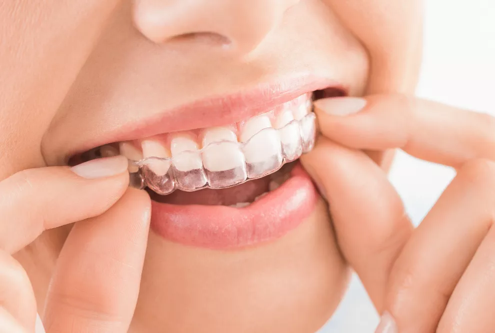 Os alinhadores transparentes são moldes removíveis e discretos que corrigem o alinhamento dos dentes de forma confortável. Eles são trocados periodicamente para ajustar os dentes até a posição correta.